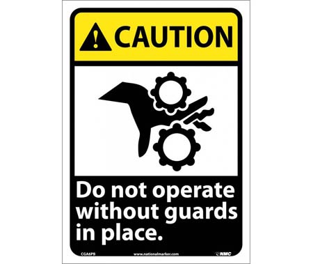 Caution Do Not Operate Without Guards in Place Sign, Vinyl