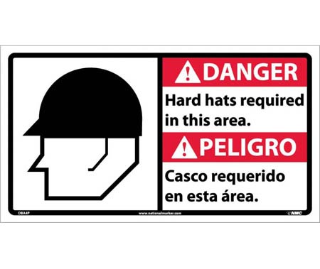 Danger Hard Hats Required In This Area Sign, Bilingual, Vinyl