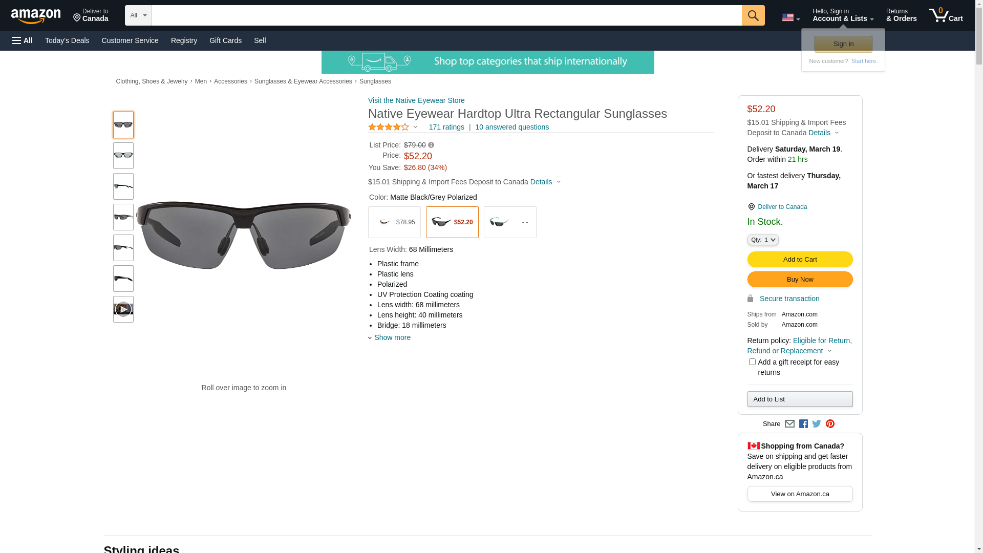 Native Eyewear Hardtop Ultra Polarized Rectangular Sunglasses, Asphalt Frame, 68 mm