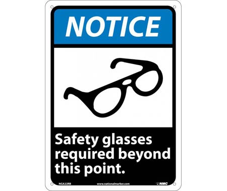 As an Amazon Associate, we earn from qualifying purchases. NMC NGA22RB Notice Safety Glasses Required Beyond This Point Sign NATIONAL-MARKER-COMPANY . NGA22RB Gallery Attributes Brand name, Manufacturer name, ManufacturerNATIONAL-MARKER-COMPANY Attribute00Protective Sign Attribute01Rigid Plastic Attribute02, colorBlack / Blue on White Attribute03, AttributeKey04Message Attribute04NOTICE - SAFETY GLASSES REQUIRED BEYOND THIS POINT Attribute05English Attribute0614 in Attribute0710 in Attribute080.05 in Attribute09+183 ?F Attribute10Mounting Holes Attribute11Indoor Attribute12Rectangle Attribute13ANSI Z535 Attribute141 per Each AttributeKey00Type AttributeKey01Material AttributeKey02Color AttributeKey03Message or Graphic AttributeKey05Language AttributeKey06, height_AttribHeight AttributeKey07, width_AttribWidth AttributeKey08Thickness AttributeKey09Application Temperature Rating AttributeKey10Mounting Type AttributeKey11Special Features AttributeKey12Shape AttributeKey13Compliance/Standards AttributeKey14Package Quantity DimensionUnitinch KnownMan, Extra Product NameNMC NGA22RB Notice Safety Glasses Required Beyond This Point Sign height14.0 moq, multiple, tierMinQty11 MPNNGA22RB qtyInStockAvailable SKU17974 tierPrice117.94 width10.0 Distributor offers SellerSKUMOQIn stockMultiplePrices hantover.com179741Available11 @ $17.94