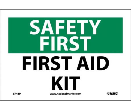 As an Amazon Associate, we earn from qualifying purchases. Safety First - First Aid Kit Sign, Vinyl NATIONAL-MARKER-COMPANY . SF41P Gallery Attributes Brand name, Manufacturer name, ManufacturerNATIONAL-MARKER-COMPANY Attribute00First Aid Sign Attribute01Vinyl Attribute02, colorGreen / Black on White Attribute03Message Only Attribute04SAFETY FIRST - FIRST AID KIT Attribute05English Attribute067 in Attribute0710 in Attribute080.004 in Attribute09+178 ?F Attribute10Adhesive Backed Attribute11Indoor Attribute12Rectangle Attribute13OSHA 29 CFR-1910.145 Attribute141 per Each AttributeKey00Type AttributeKey01Material AttributeKey02Color AttributeKey03Message or Graphic AttributeKey04Message AttributeKey05Language AttributeKey06, height_AttribHeight AttributeKey07, width_AttribWidth AttributeKey08Thickness AttributeKey09Application Temperature Rating AttributeKey10Mounting Type AttributeKey11Special Features AttributeKey12Shape AttributeKey13Compliance/Standards AttributeKey14Package Quantity DimensionUnitinch KnownMan, Extra Product NameSafety First - First Aid Kit Sign, Vinyl height7.0 moq, multiple, tierMinQty11 MPNSF41P qtyInStockAvailable SKU20295PS710 tierPrice116.69 width10.0 Distributor offers SellerSKUMOQIn stockMultiplePrices hantover.com20295PS7101Available11 @ $16.69