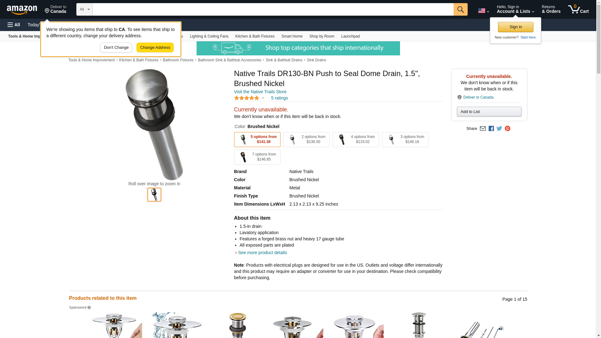 Native Trails DR130-BN Push to Seal Dome Drain, 1.5", Brushed Nickel