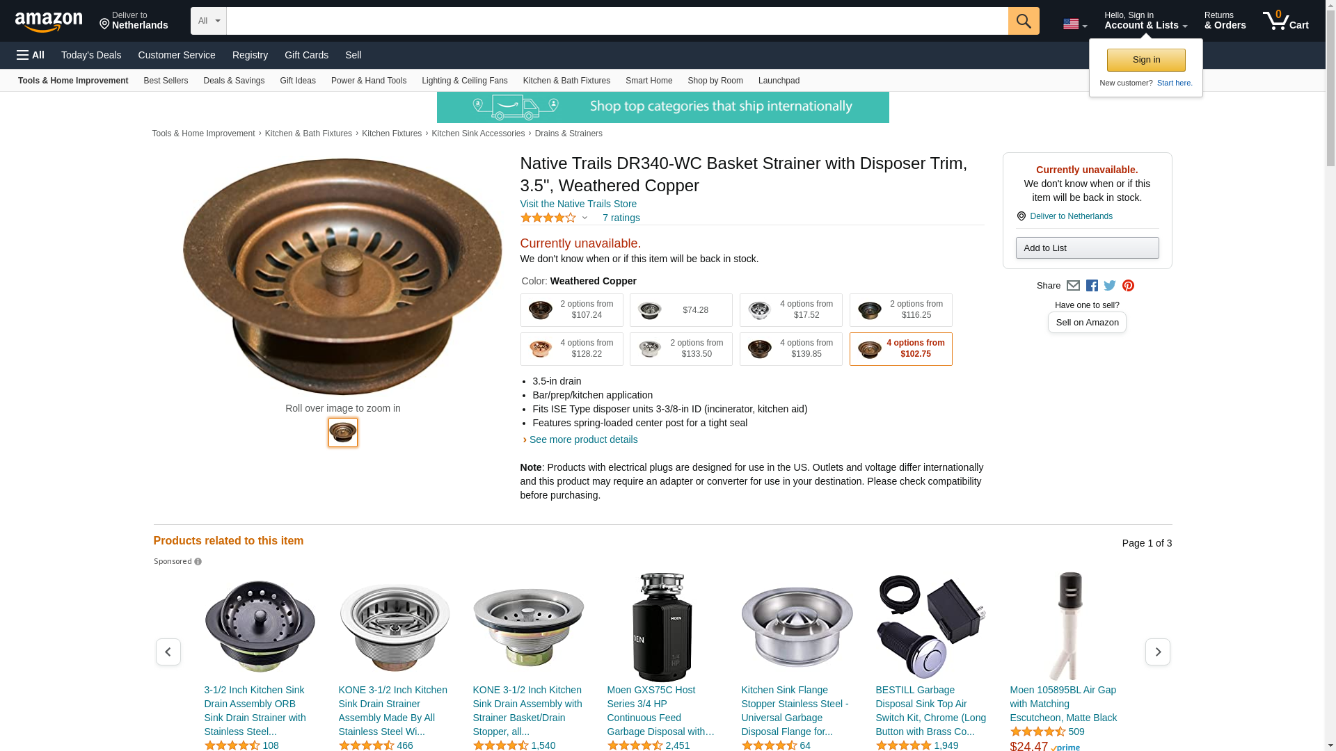 Native Trails - DR340-WC - 3.5'' Basket Strainer with Disposer Trim in Weathered Copper