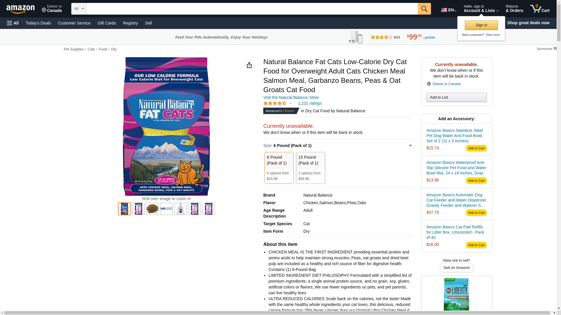 | Feature | Contains 1 - 6-pound bag of cat food |