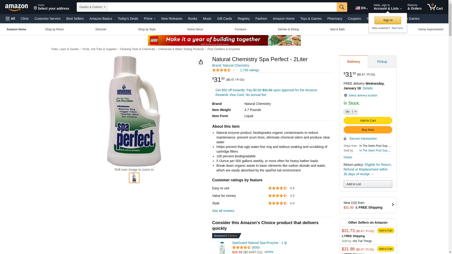 04034 Natural Chemistry 2 Liter Spa Perfect