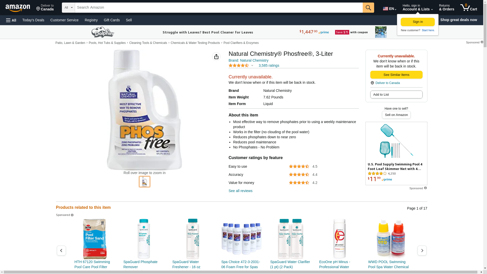 <ul> <li>New Natural Chemistry 05121 PHOSfree - Most Effective Way to Remove Phosphates!</li> <li>Most effective way to remove phosphates</li> <li>Works in the filter (no clouding of the pool water)</li> <li>Reduces phosphates down to near zero</li> <li>Reduces pool maintenance</li> <li>No Phosphates - No Problems</li> <li>Size - 101.5 oz (3 Liters)</li> <li>Product Condition: Brand New</li> <li>Part Number: 05121</li> <li>60 Day satisfaction guarantee</li> </ul>
