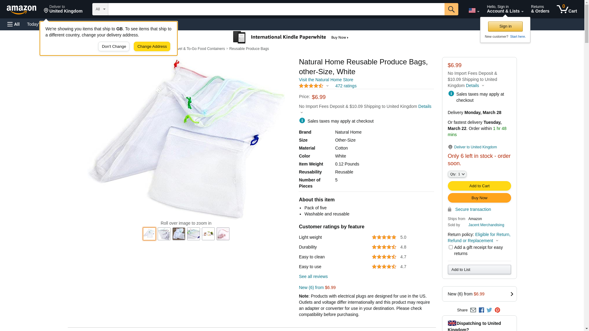 Natural Home Reusable Produce Bags, other-Size, White