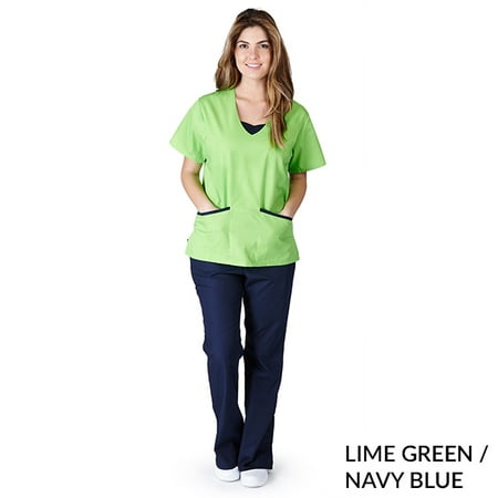 Contrast Jersey Inset Women's Scrub Set (Lime/Navy Blue, Medium)