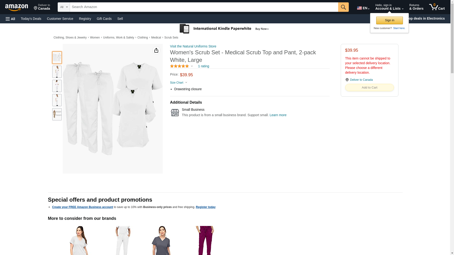 "Women's Scrub Set - Medical Scrub Top and Pant, 2-pack White, Large"