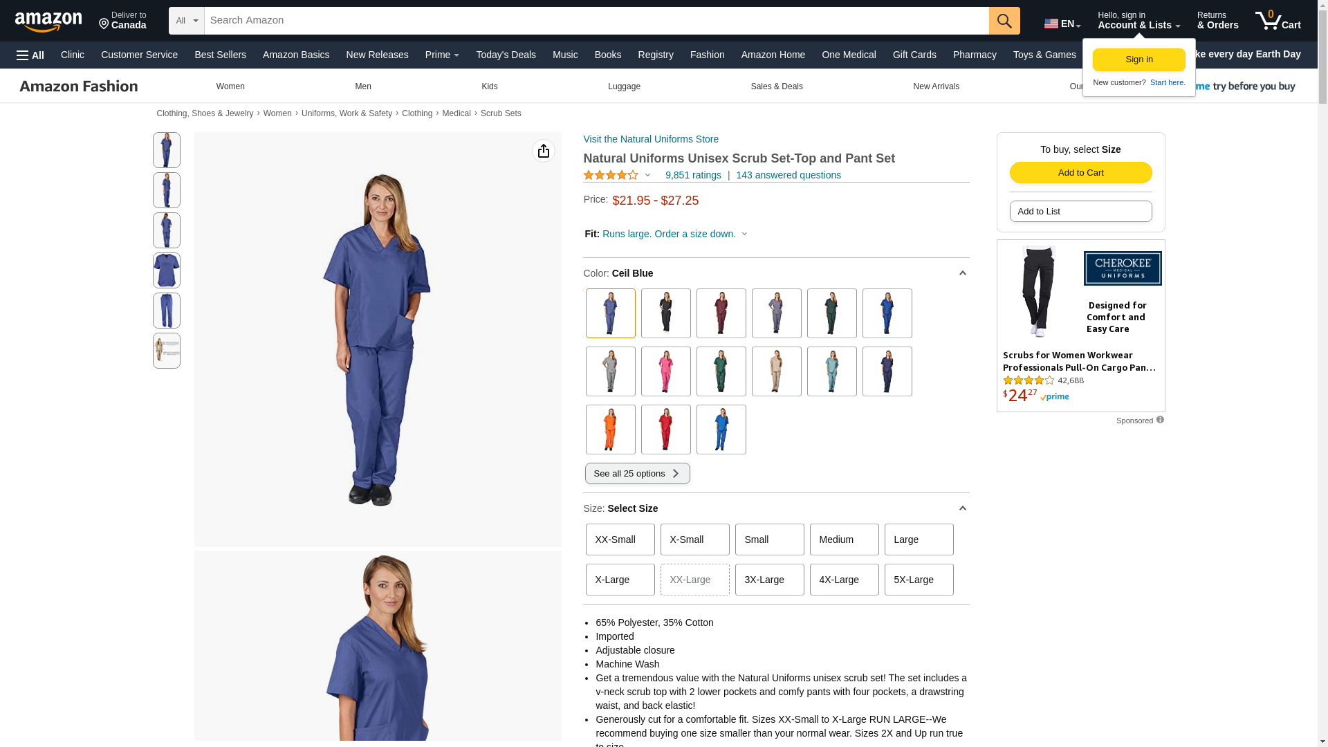 Get a tremendous value with the Natural Uniforms unisex scrub set! The set includes a v-neck scrub top with roomy pockets and comfy pants with four pockets, a drawstring waist, and back elastic! <br /> <ul> <li>Poly-cotton</li> <li>65% Polyester//35% Cotton</li> <li>V-Neck Top and Pants set</li> <li>Special Color-Fast Fabric--Colors do not fade</li> <li>Triple Reinforced Seams and Stitches for added durability</li> </ul>