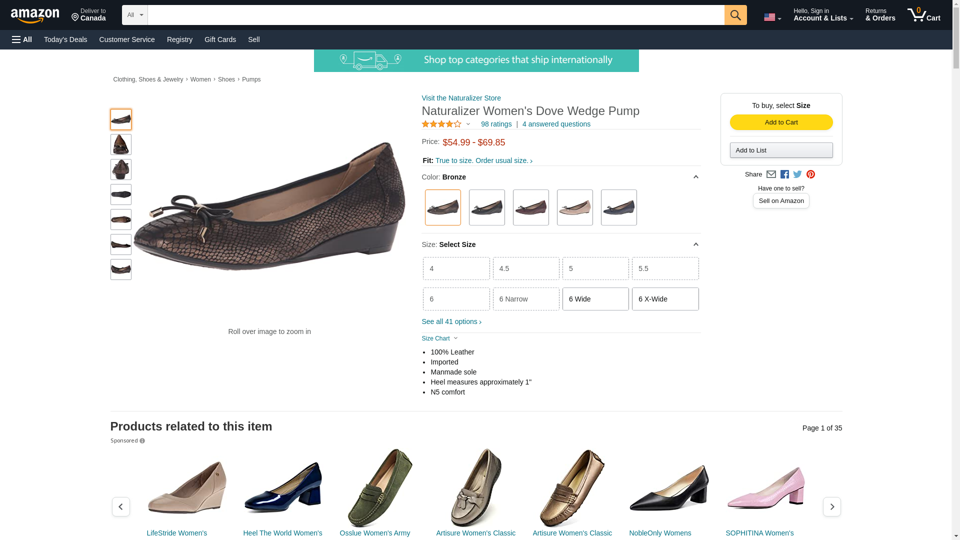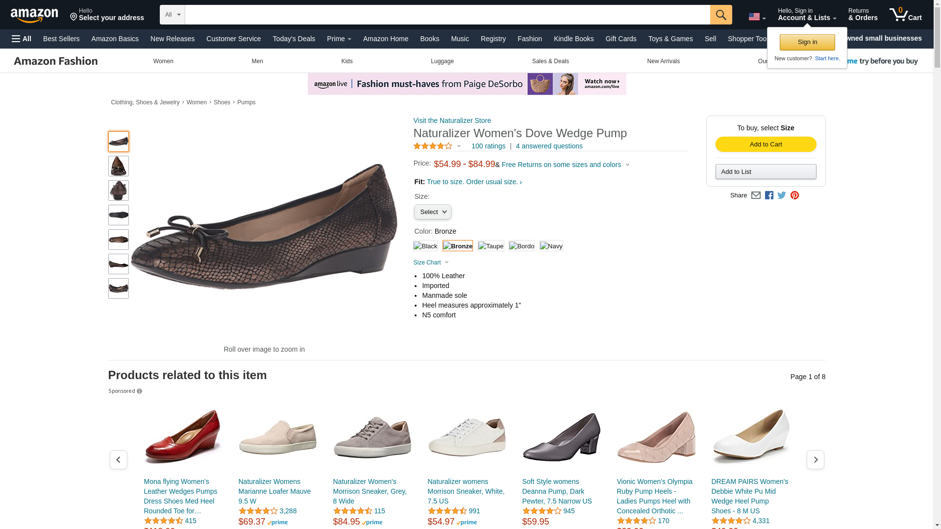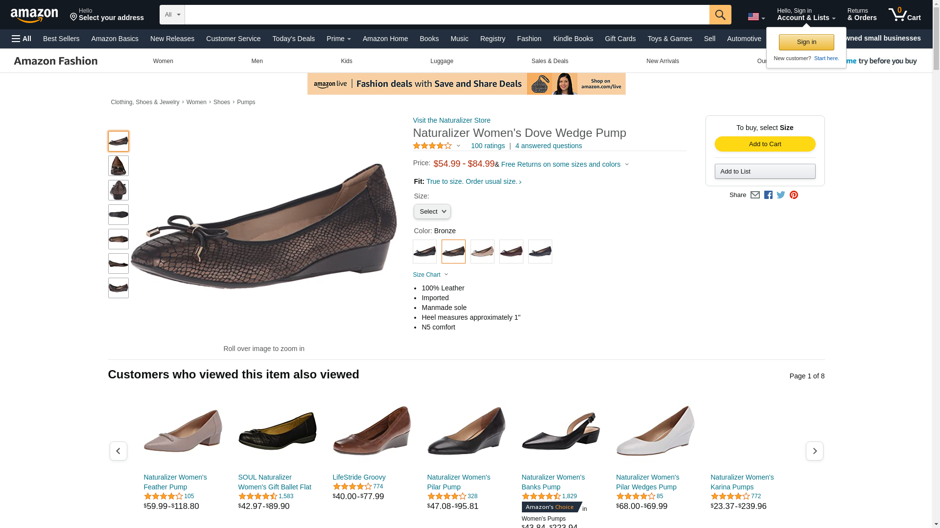 Naturalizer Women's Dove Wedge Pump Bronze 7.5 N US