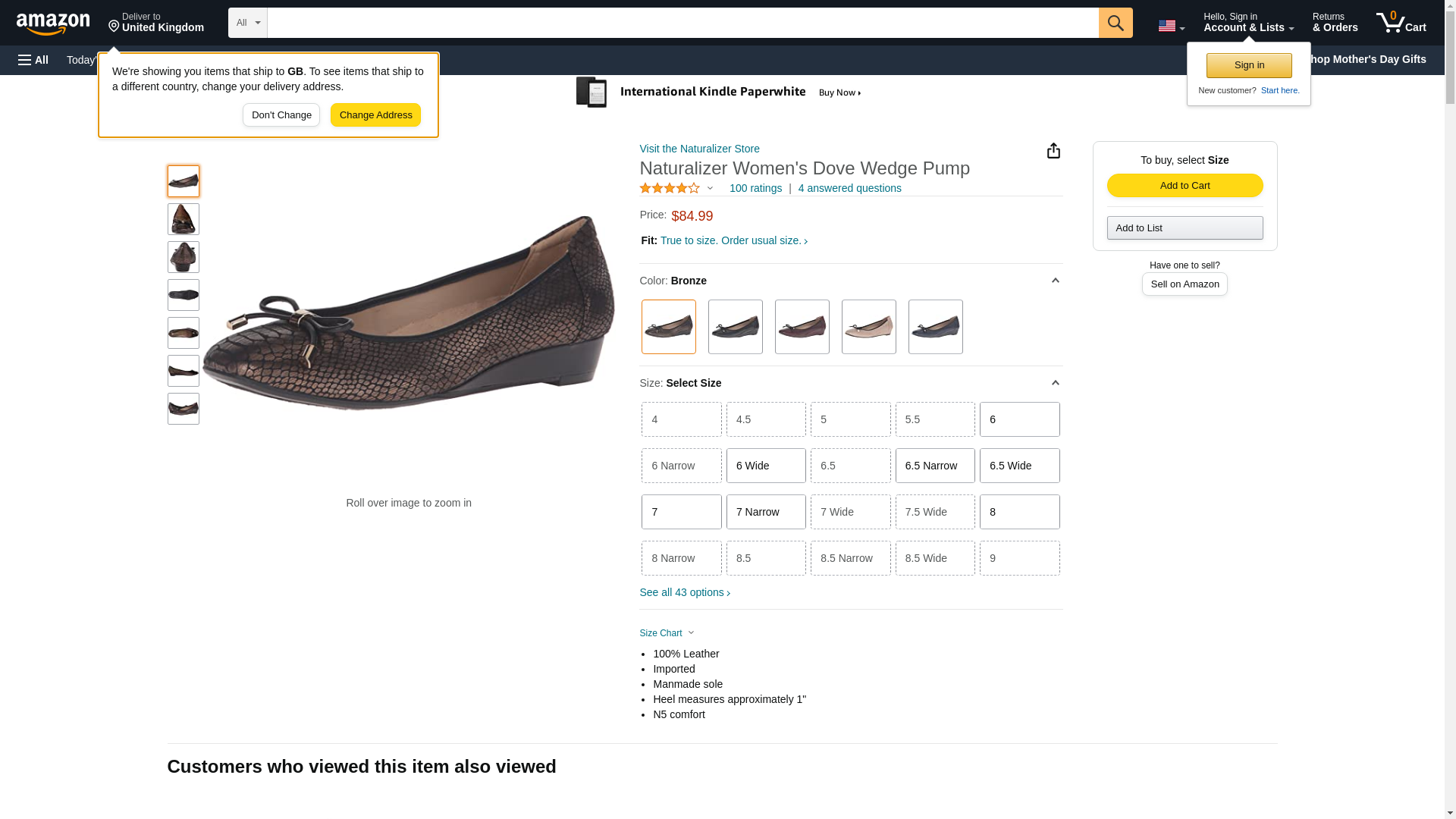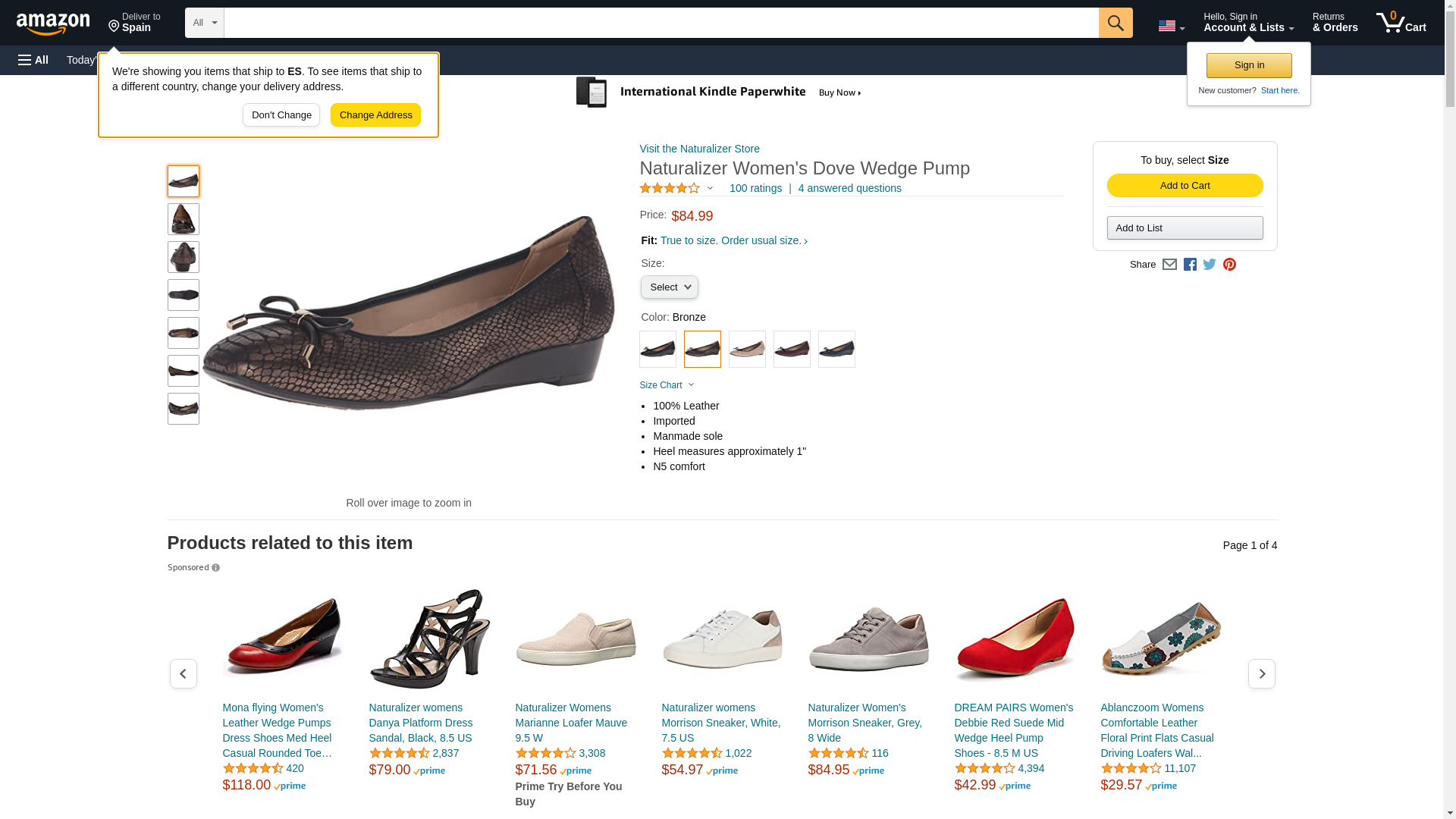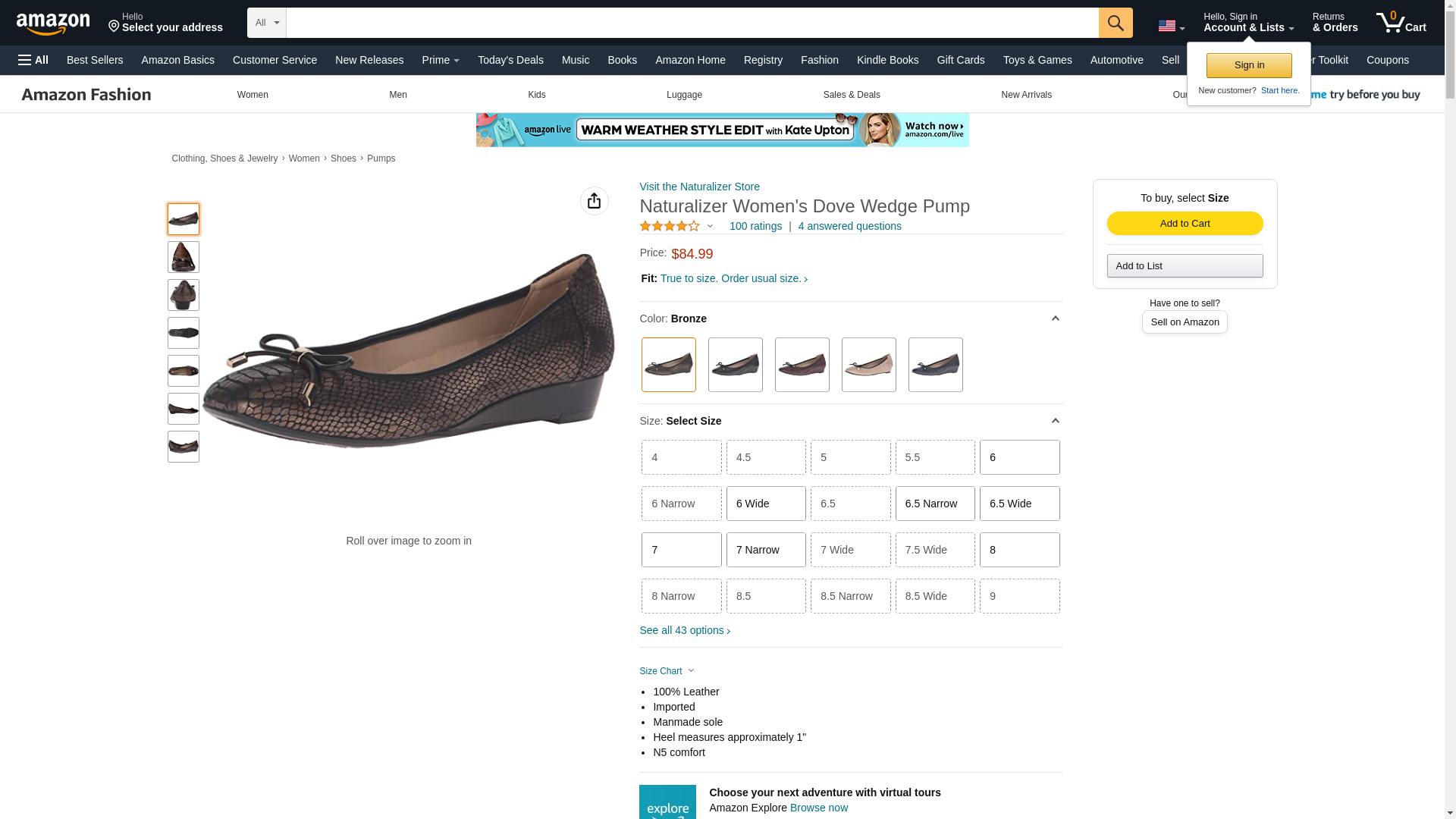 Naturalizer Women's Dove Wedge Pump Bronze 7.5 N US