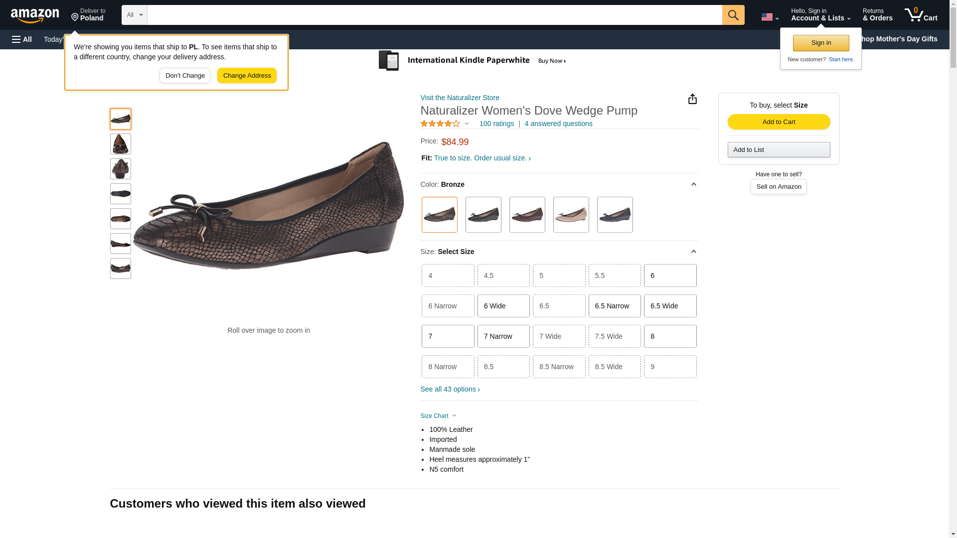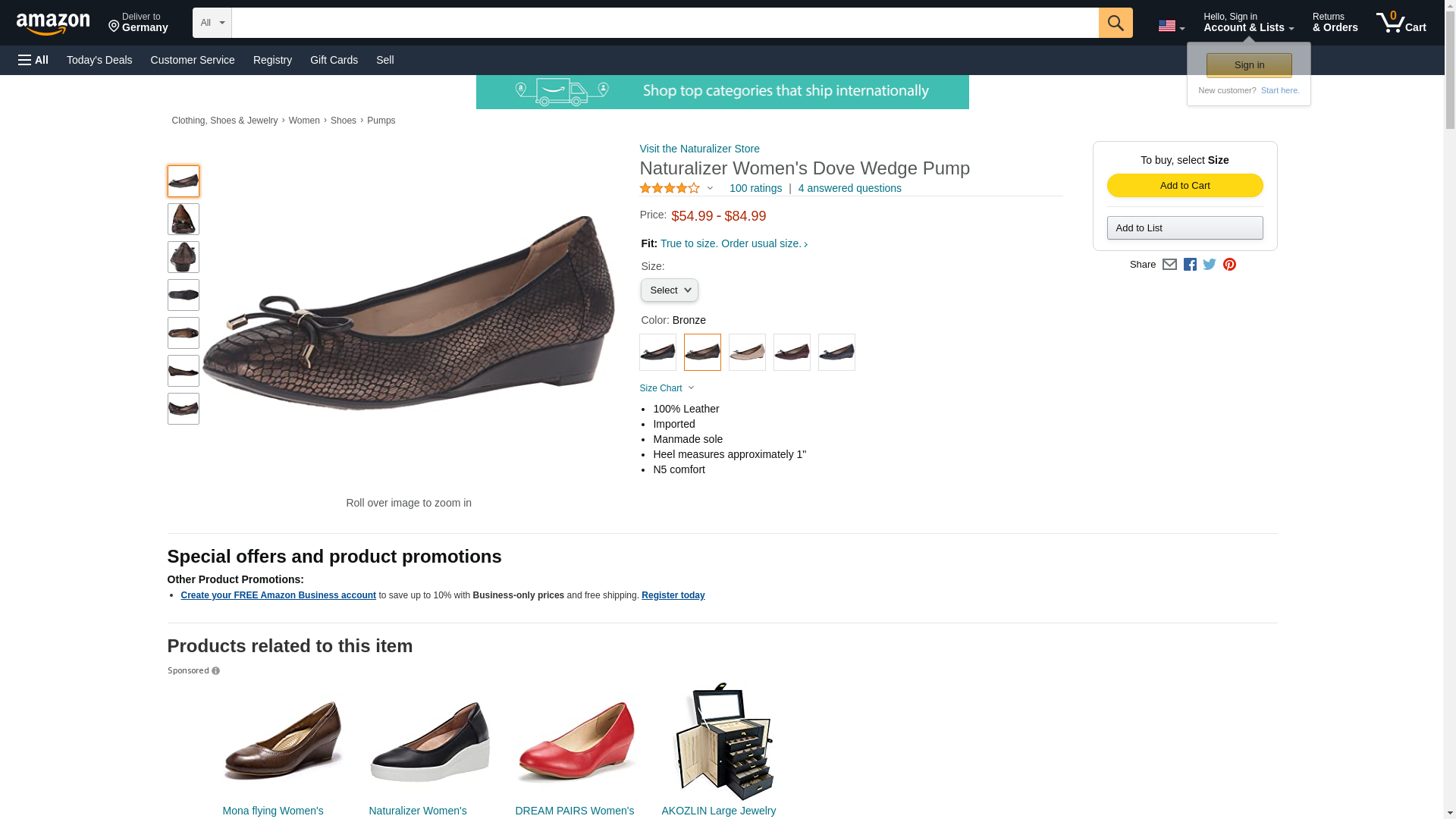 Naturalizer Women's Dove Wedge Pump Bronze 9.5 N US
