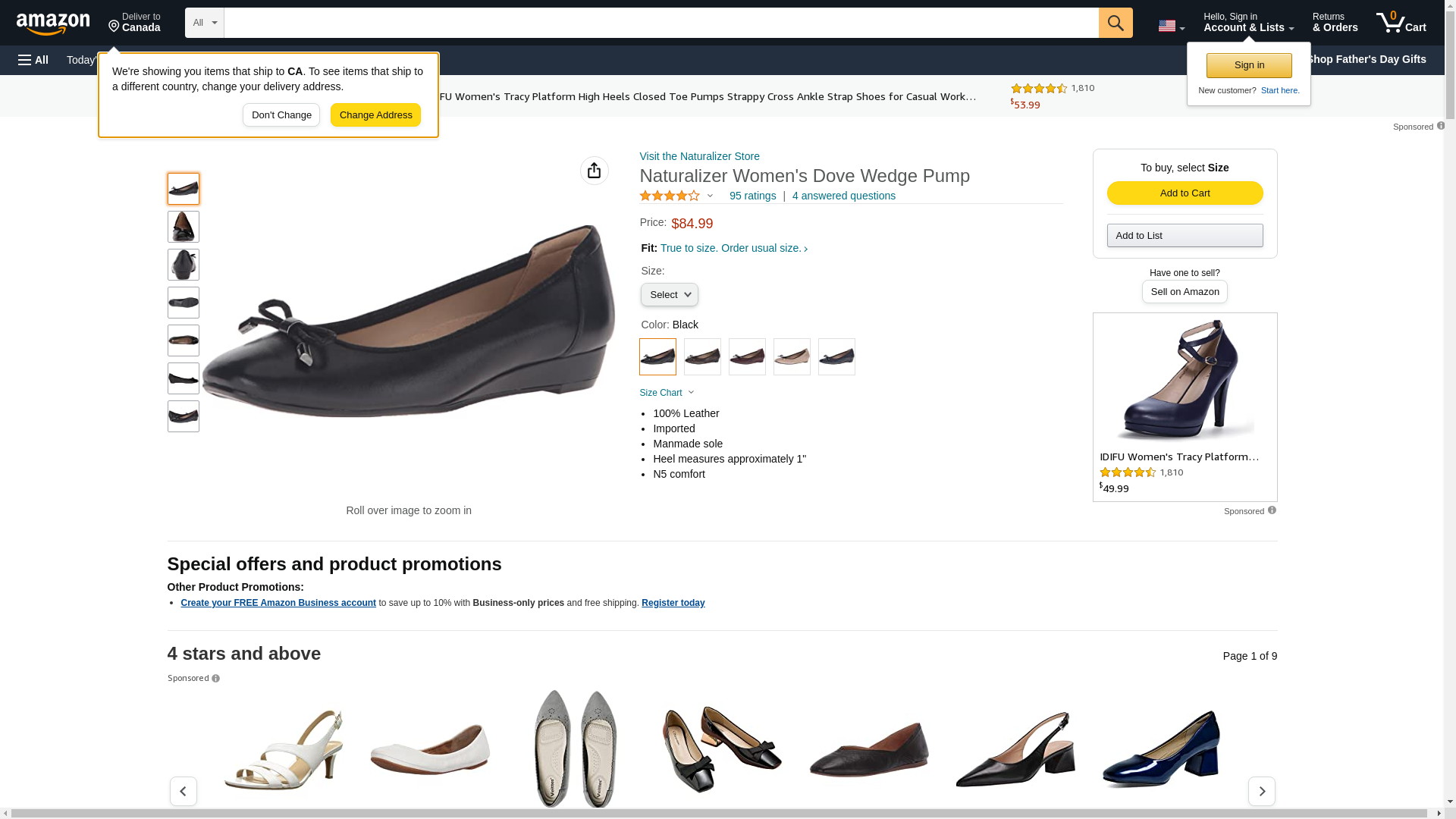 Naturalizer Women's Dove Wedge Pump Black 9.5 N US