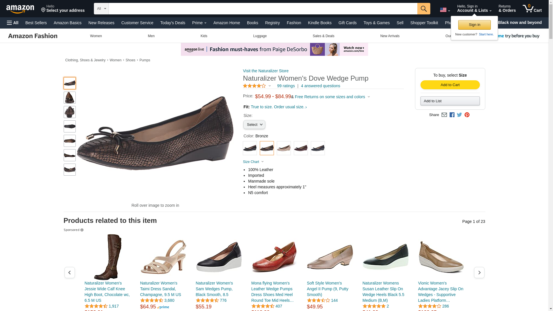 Naturalizer Women's Dove Wedge Pump Bronze 8.5 M US