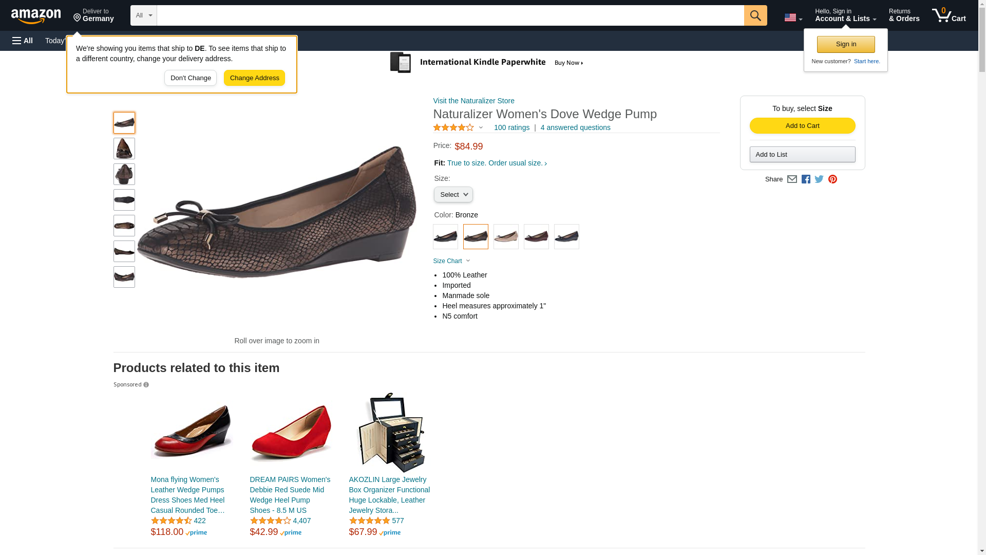 Naturalizer Women's Dove Wedge Pump Bronze 8.5 W US