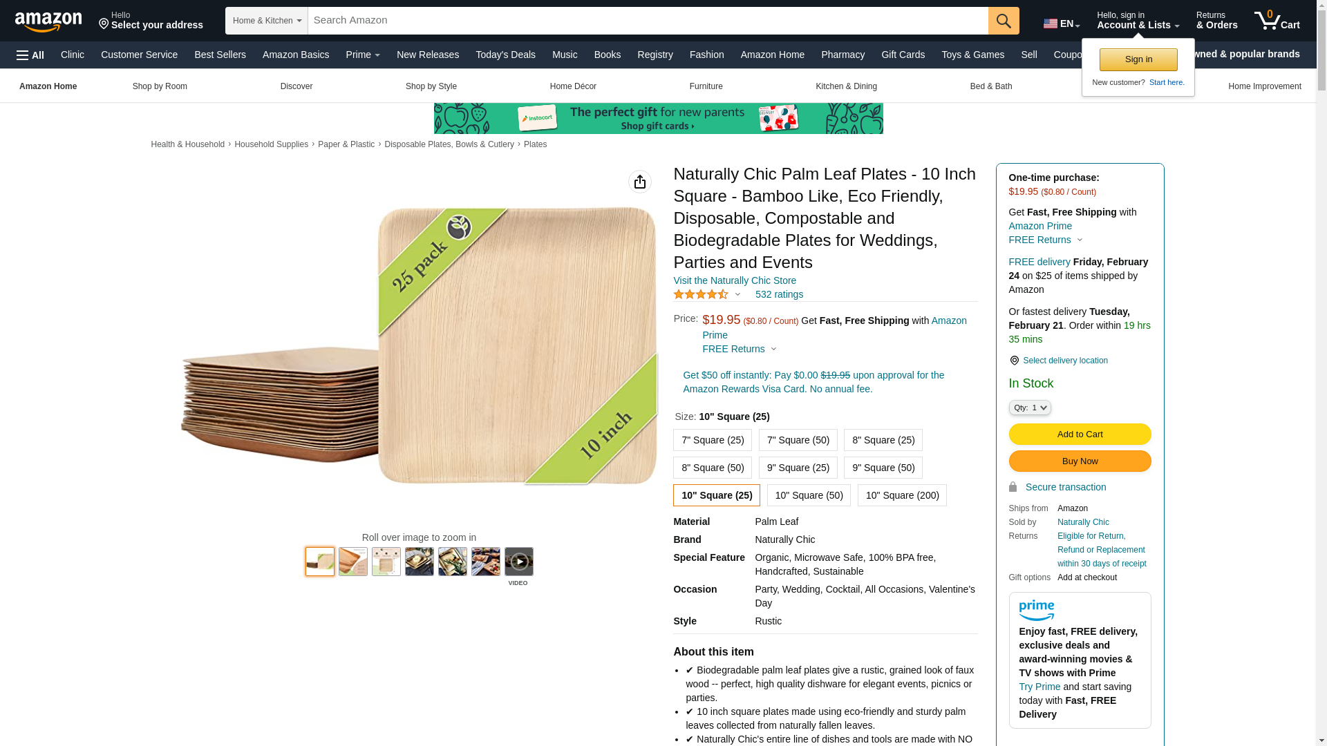 Naturally Chic Compostable Biodegradable Disposable Plates - Palm Leaf 10” Square Small Dinnerware Set - Eco Friendly Alternative - Party, Wedding, Event Plates (25 Pack)