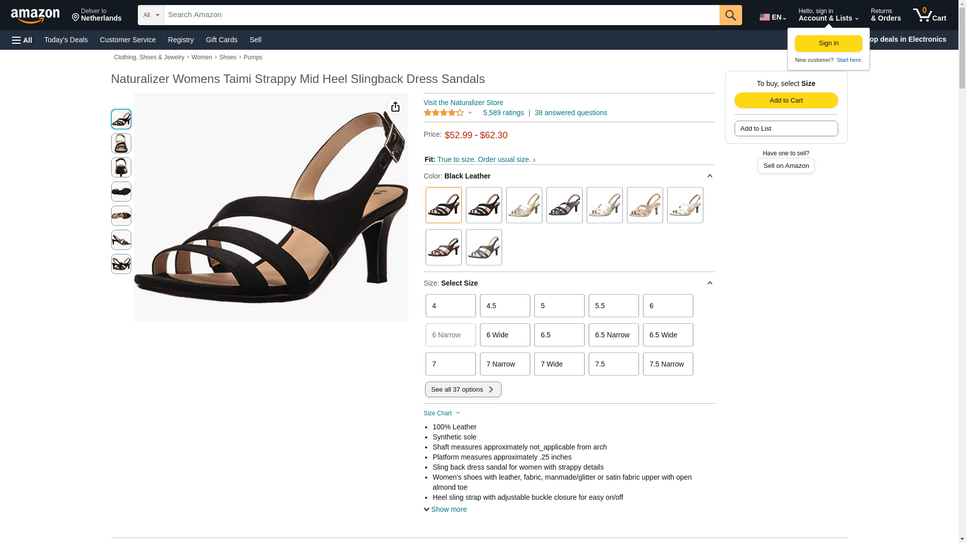 - Heel sling strap with adjustable buckle closure for easy on/off