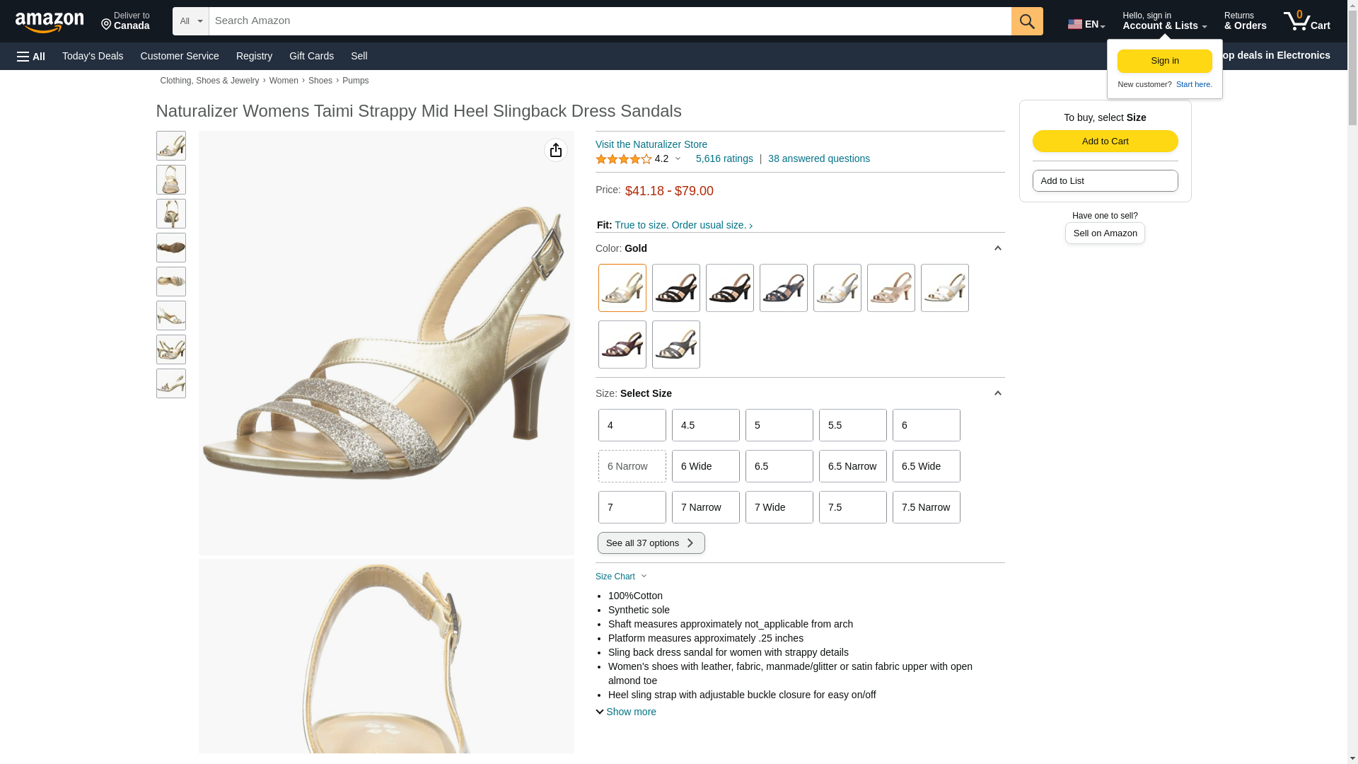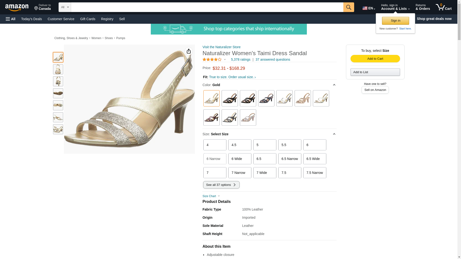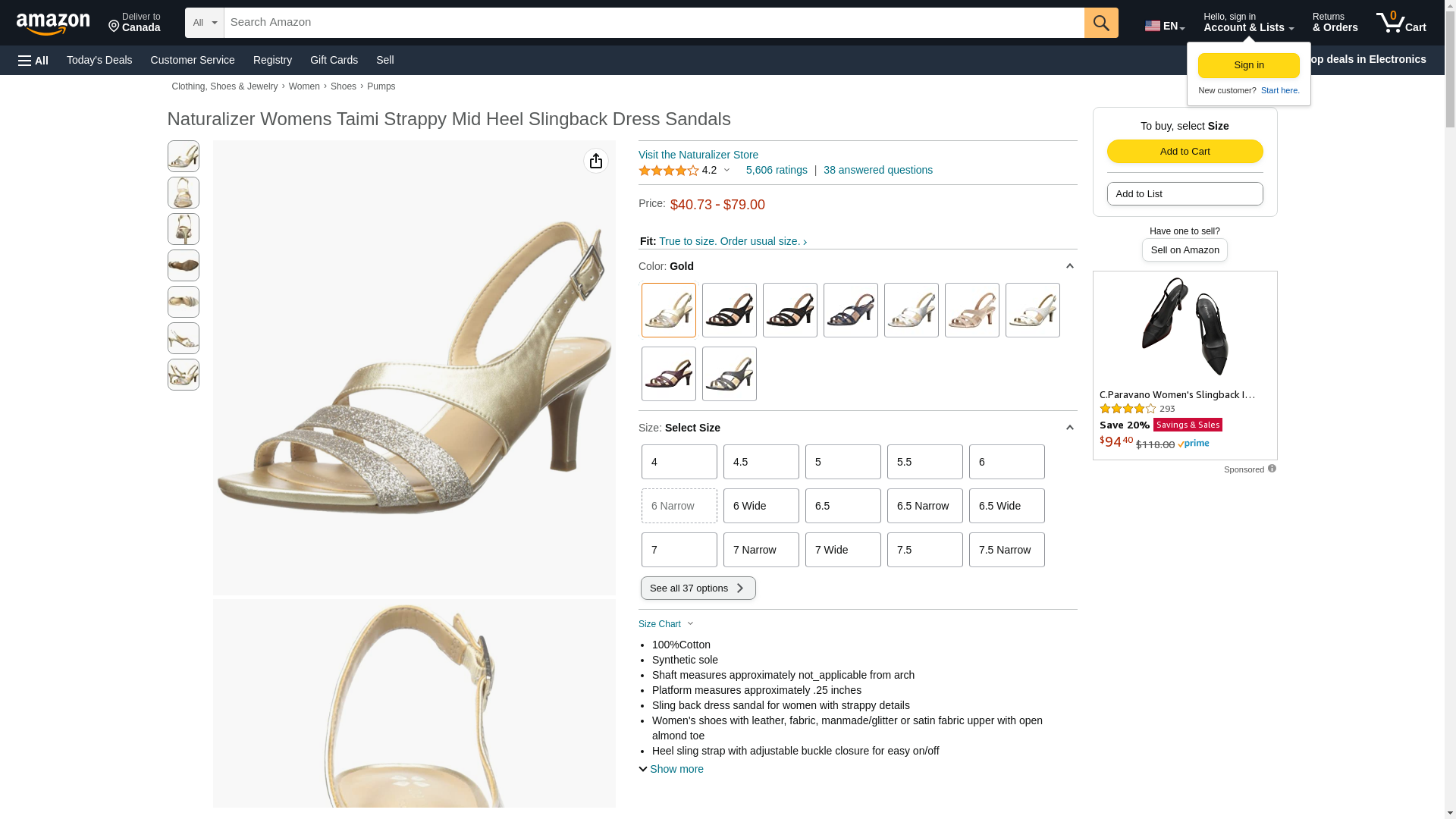 Naturalizer Women's Taimi, Gold, 6.5 N US