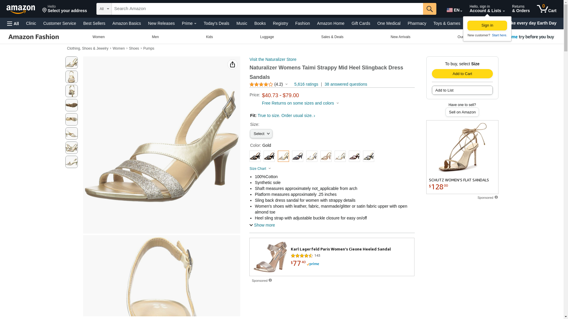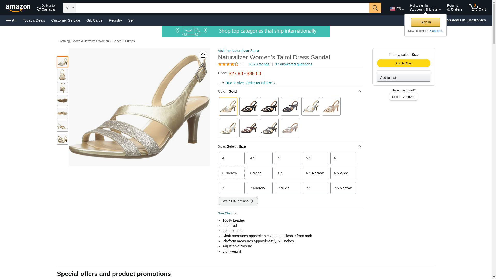 Naturalizer Women's Taimi, Gold, 5.5 M US