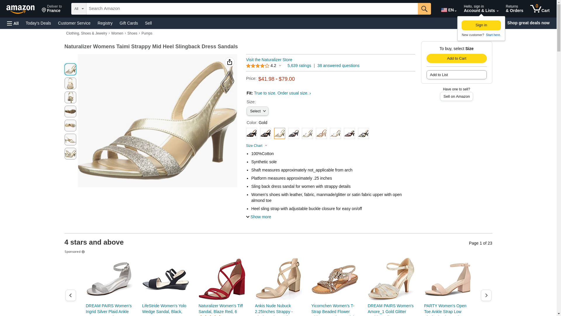 Naturalizer Womens Taimi Strappy Mid Heel Slingback Dress Sandals,Gold Glitter,9.5 W US