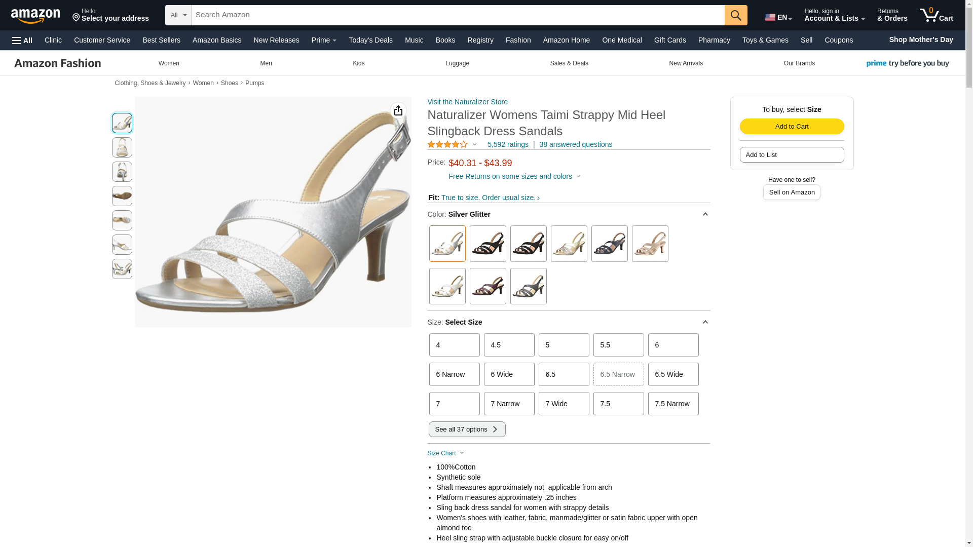 Naturalizer Womens Taimi Strappy Mid Heel Slingback Dress Sandals ,Silver Glitter,9.5 W US