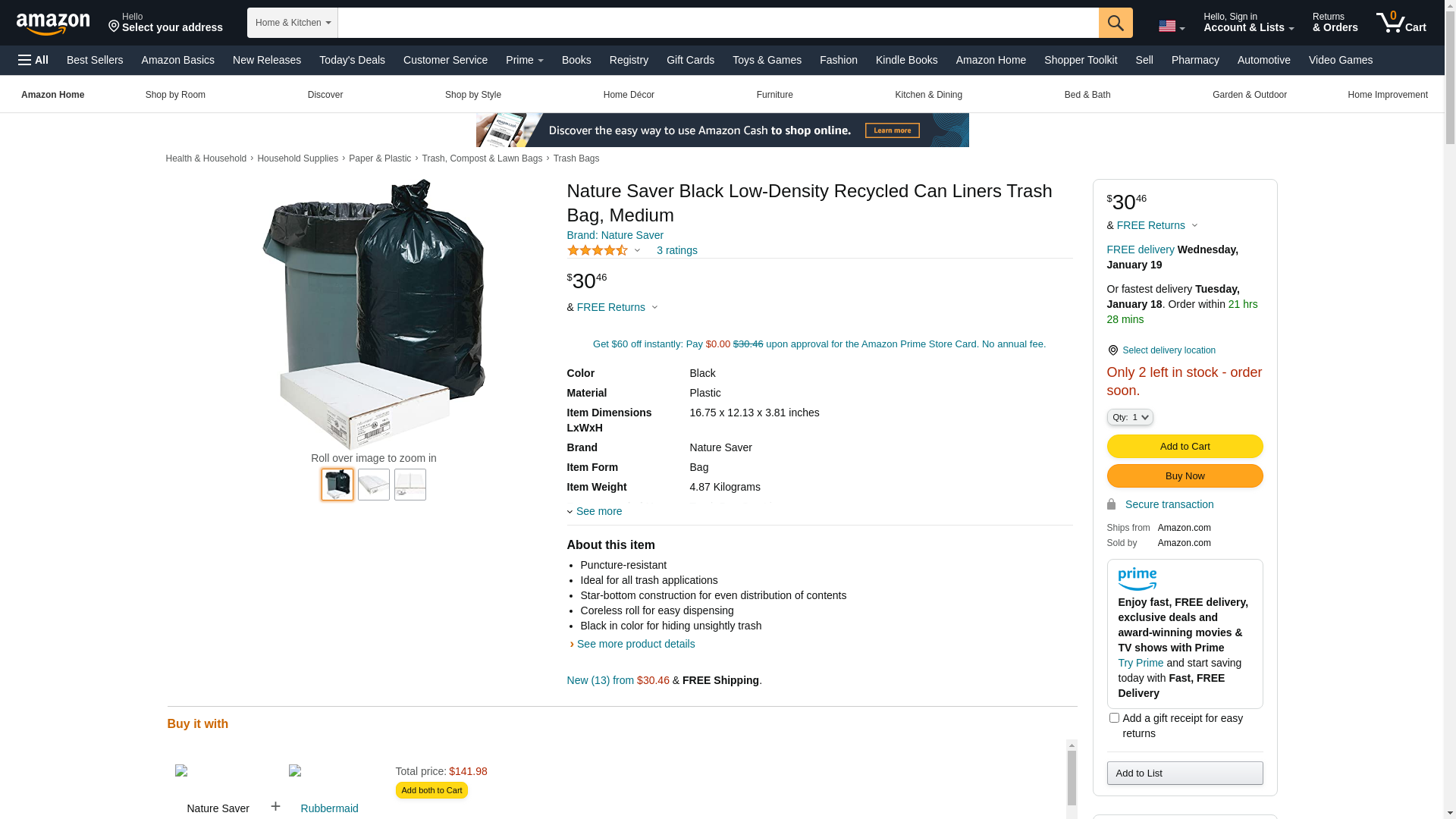 Nature Saver 00989 Trash Can Liners,Rcycld,31-33 Gal,1.25mil,33-Inch x49-Inch ,100/BX,BK