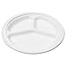 NatureHouse P007 Compostable Sugarcane Bagasse 10 Inch, 3-Compartment Plate, Round, White, Pack of 50