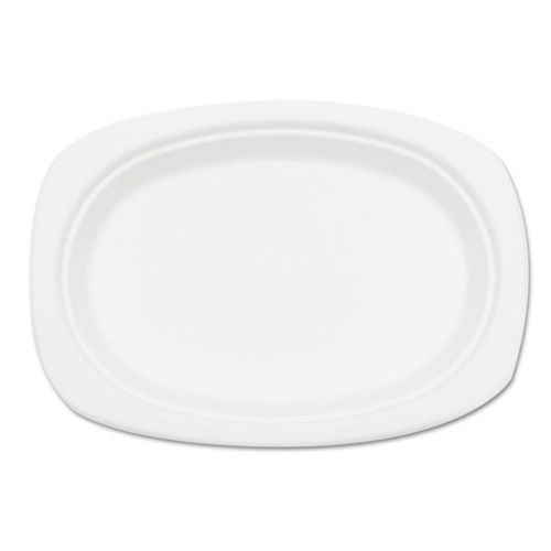 NatureHouse Compostable Sugarcane Bagasse, Plates, Oval, White, 500 Per Case