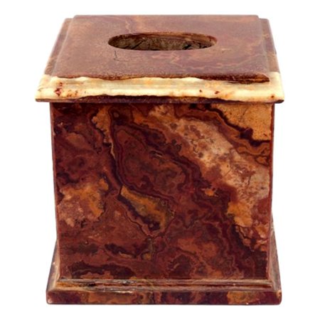 NTX1219 <br /> <b>Features</b> <br /> <ul> <li>Tan veins</li> <li>Hand crafted and hand polished</li> <li>Functional and decorative</li> <li>Series 300 in Multi Onyx collection</li> <li>Color can vary with the natural stone</li> <li>Product Type: Tissue box cover</li> <li>Finish: Brown</li> <li>Primary Material: Stone</li> <li>Mount Type: Freestanding</li> <li>Life Stage: Adult</li> </ul> <br /> <b>Dimensions</b> <br /> <ul> <li>Overall Height - Top to Bottom: 6.5"</li> <li>Overall Width - Side to Side: 7"</li> <li>Overall Depth - Front to Back: 7"</li> <li>Overall Product Weight: 8.5 lbs</li> </ul>