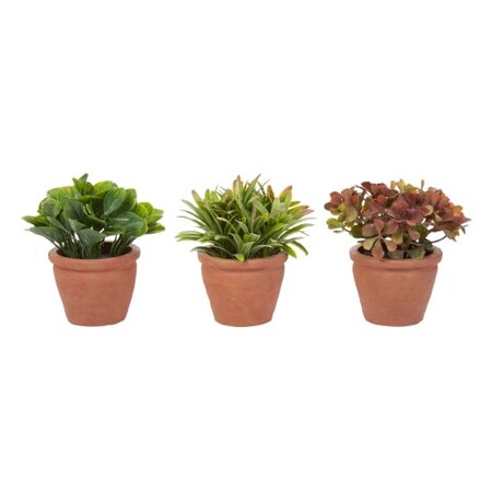 Artificial 6" Tall Greenery Arrangement House Plants in Pots- Round Set of 3, Decorative Faux Indoor
