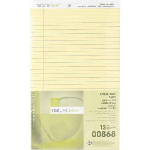 NAT00868 - Nature Saver 100% Recycled Canary Legal Ruled Pads