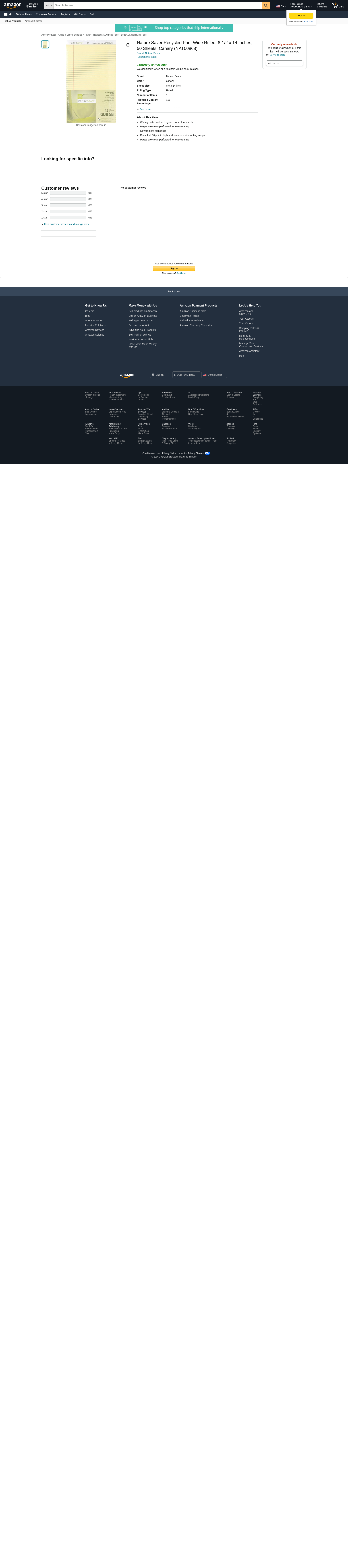 Nature Saver 00868 Recycled Pad, Wide Ruled, 8-1/2-Inch x14-Inch, 50 Sheets, Canary