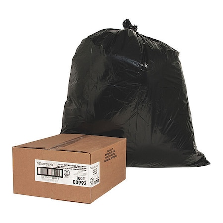 Nature Saver Trash Can Liners,Rcycld,31-33 Gal,1.65mil,33"x39",100/BX,BK
