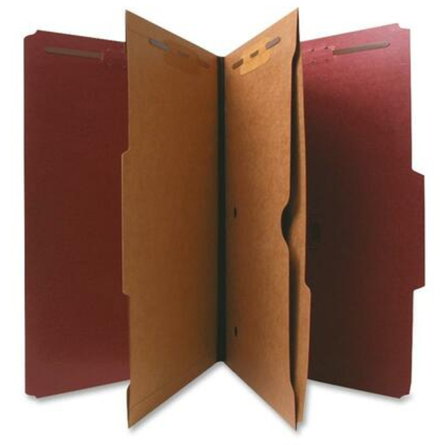 Classification folders keep projects organized by client or financial reports by quarters. Perfect for holding certificates, photos, or computer disks that cannot be punched or stapled. Front and back covers offer two 2" capacity fasteners. Two 11 point pocket dividers have 1" bonded fasteners on each side. Each folder expands to 2" and has 2/5 cut tabs. Covers are made of 25 point pressboard. Folders are made with a high percentage of recycled material.