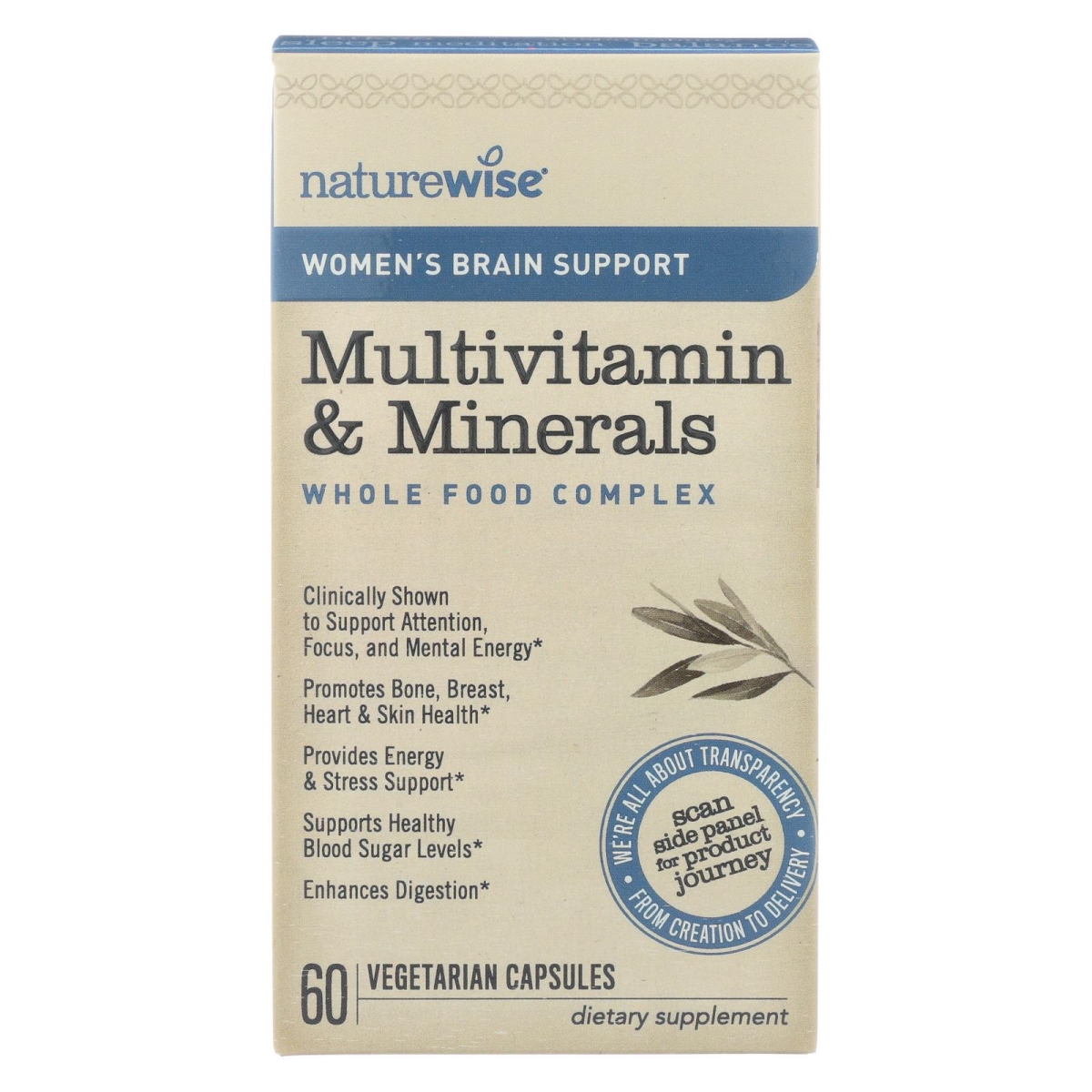 Naturewise 2304111 60 VCAP Vegetarian Capsules Womens Multivitamin & Minerals Brain Support