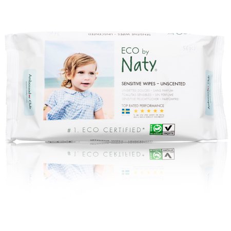 NATY Organic Fragrance Free Sensitive Eco Wipes, 56 CT