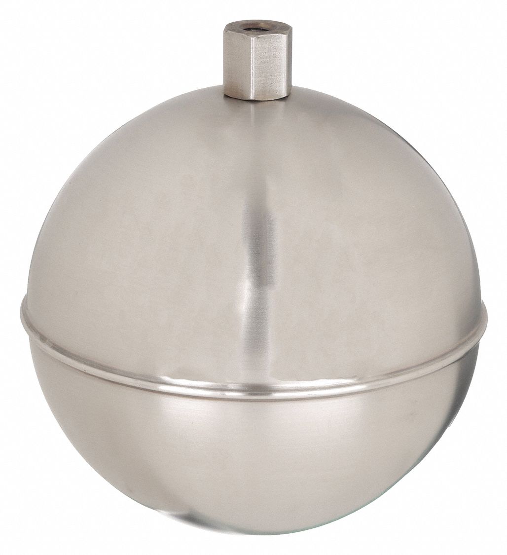 - Price For: Each Shape: Round Item: Float Ball Material of Construction: Stainless Steel Float Weight: 3.68 oz. Float Dia.: 3-1/2" Max. Liquid Temp.: 225 Degrees F Threaded: Self, 1/4-20 Connection: External Country of Origin (subject to change): United States