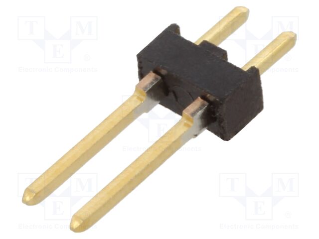 EU RoHS: Compliant ECCN (US): EAR99 Part Status: Active HTS: 8536.69.40.40 Type: Unshrouded Header Gender: HDR Number of Contacts: 2 Number of Rows: 1 Termination Method: Solder Terminal Pitch (mm): 2.54 Body Orientation: Straight Maximum Current Rating (A): 3/Contact Insulation Resistance (MOhm): 5000 Minimum Operating Temperature (°C): -65 Maximum Operating Temperature (°C): 105 Packaging: Carton Product Length (mm): 4.67 Product Depth (mm): 2.54 Product Height (mm): 10.36 Contact Plating Thickness: Flash Tail Length (mm): 3.17 Mounting: Through Hole