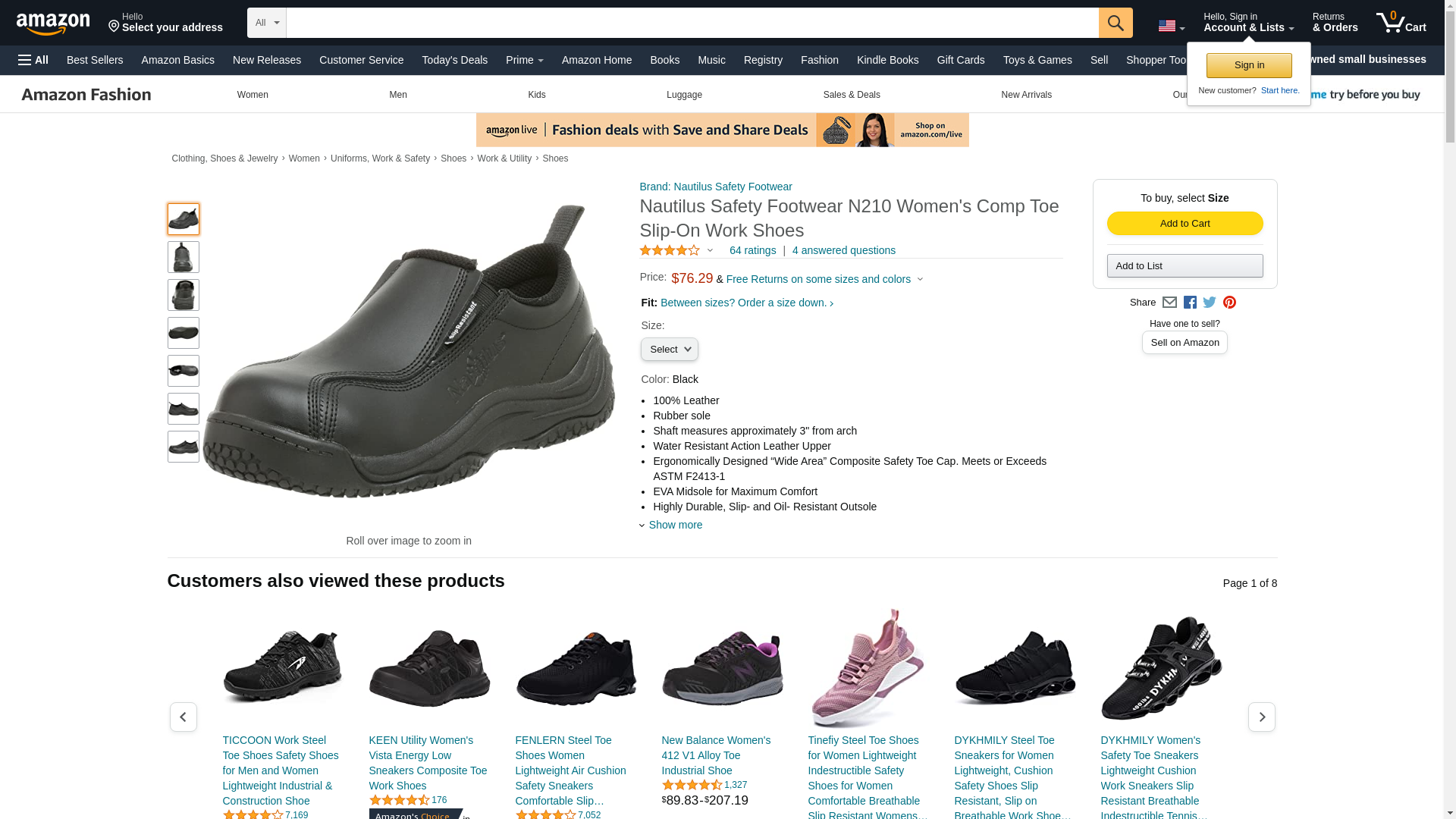 Nautilus 210 Women's Slip Resistant Comp Toe No Exposed Metal Slip-On,Black,6 M/W
