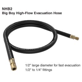 - FAST RECOVERY AND EVACUATION: NAVAC NHB2 Refrigerant hose has a 1/2 inch internal diameter for faster evacuation and recovery of an HVAC system. It is 6 feet long and black in color.