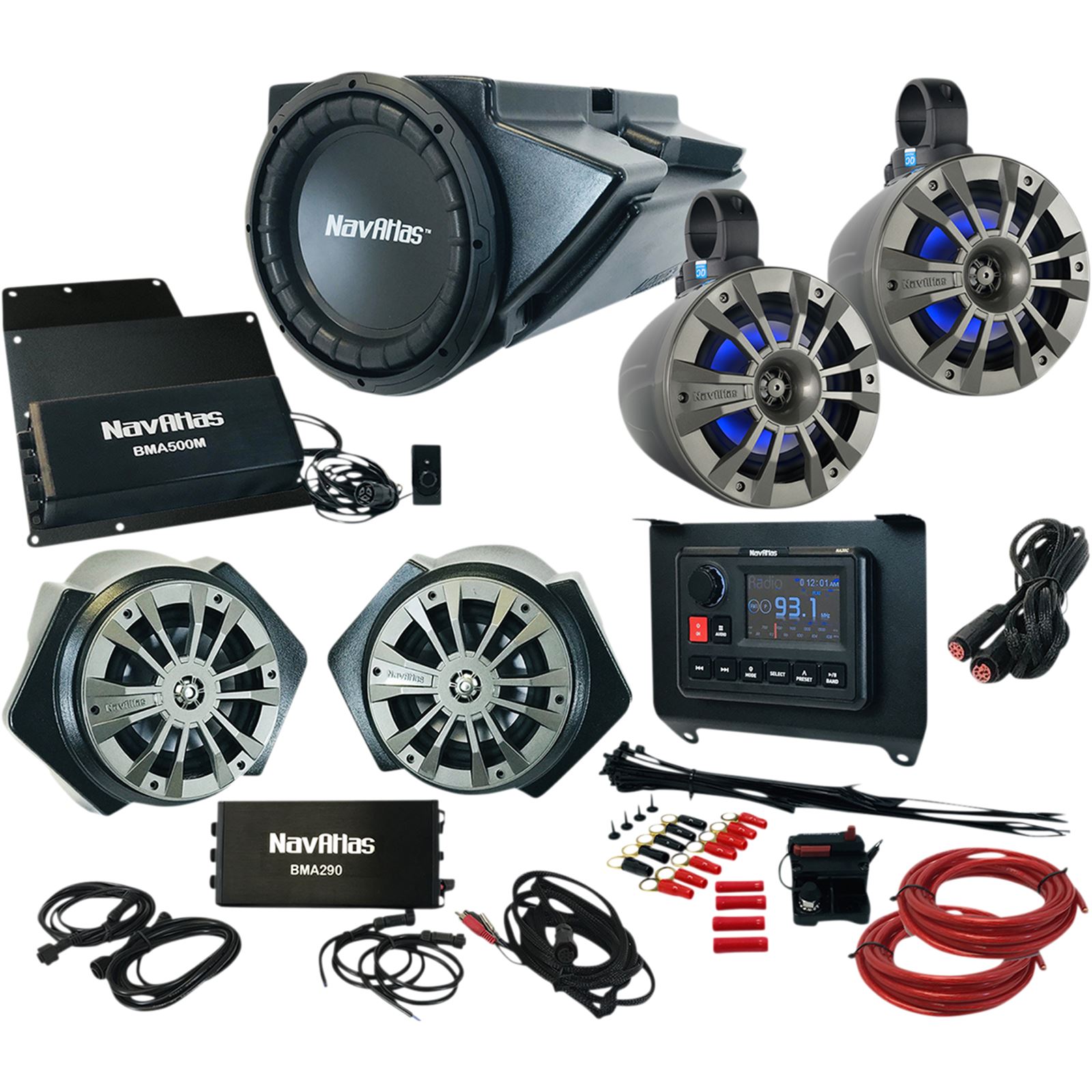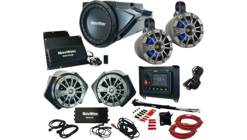 - Zone 4 kits include 61/2in. amplified roll-cage speaker system, 61/2in. RZR speaker and kick panel system with an amplifier, 10in. 300W subwoofer and enclosure system with amplifier, dual amplifier bracket, digital-to-digital cable for connecting amplifier to speakers and installation kit with 60A circuit breaker