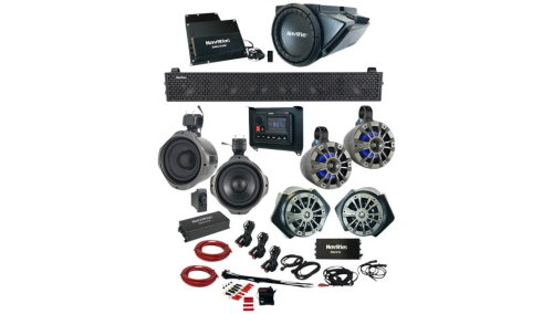 For four-seater models, unless noted.<br> Radio source units include 3in. TFT screen, AM/FM source unit and made with Bluetooth technology functionality.<br> Audio kits are available with either a 3in. TFT screen or rocker switch-type made with Bluetooth technology controller.<br> Zone 6 kits include 27in. 10-speaker amplified soundbar, 8in. roll-cage subwoofer system with an amplifier, 6-1/2in. amplified roll-cage speaker system, 6-1/2in. RZR speaker and kick panel system with an amplifier, 10in. 300W subwoofer and enclosure system w/ amplifier, dual amplifier bracket, digital-to-digital cable for connecting amplifier to speakers, analog-to-analog cable for connecting amplifier to speakers and installation kit with 60A circuit breaker.