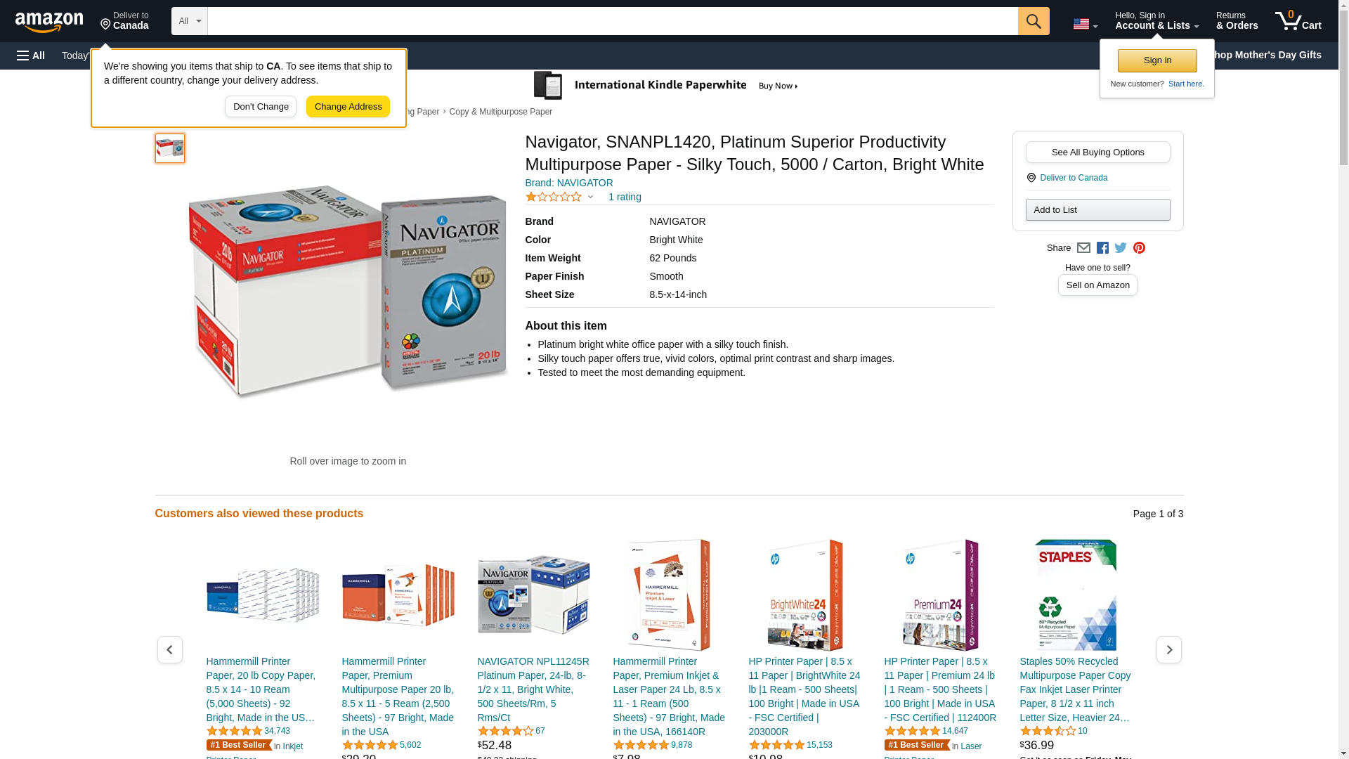 Navigator Platinum Paper, 99 Bright, 20 lb Bond Weight, 8.5 x 14, White, 500 Sheets/Ream, 10 Reams/Carton