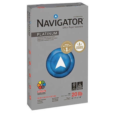 NAVIGATOR NPL1420 Platinum Paper, 20-lb., 8-1/2 x 14, Bright White, 500 Sheets/Rm, 10 Rms/Ct