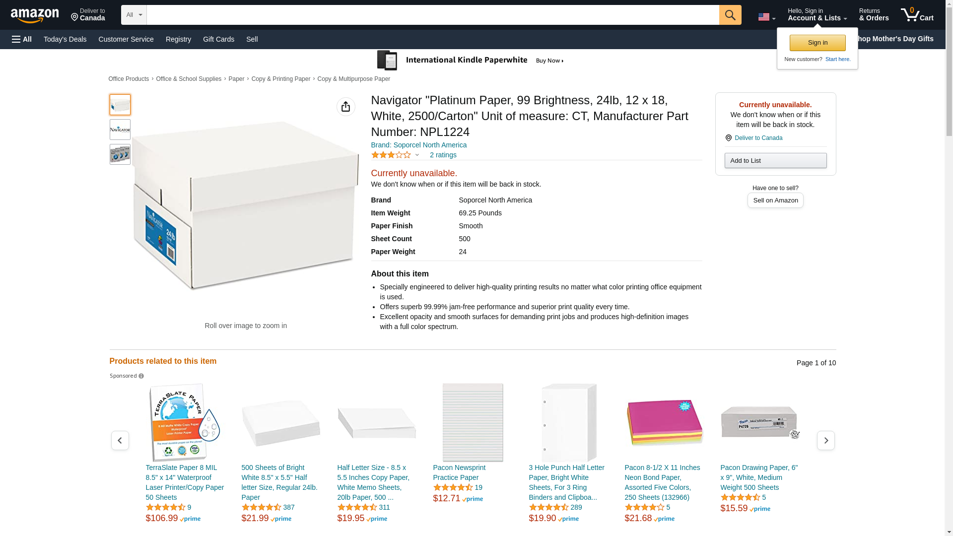 - NAVIGATOR NPL1824 Platinum Paper, 99 Brightness, 24lb, 12 x 18, White, 2500/Carton