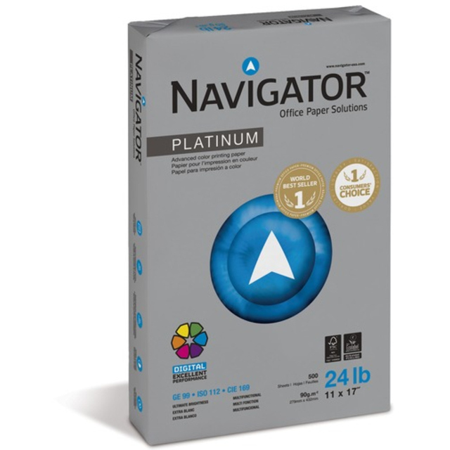 Navigator Platinum Paper, 24lb, 11 x 17, White, 2500/Carton (SNANPL1724)