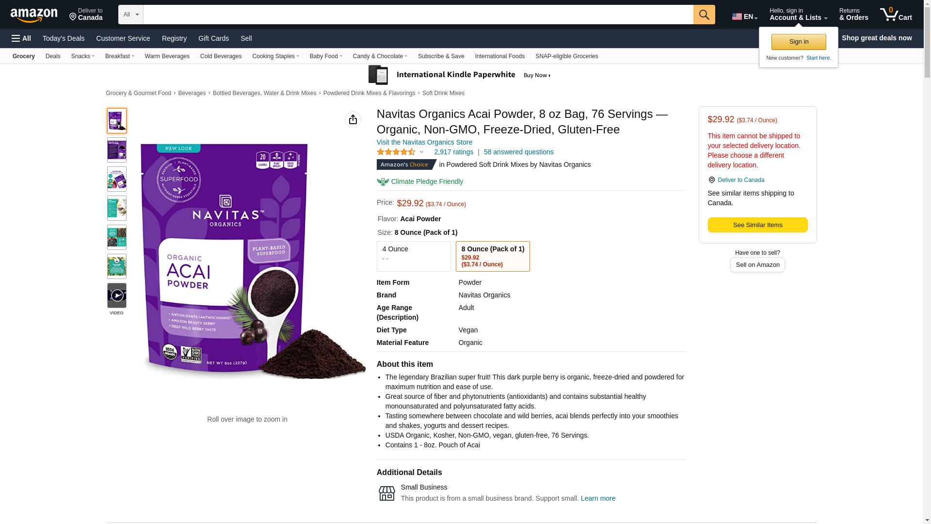 | Feature | Acai: The legendary Brazilian superberry! Navitas Organics Acai Powder is organic and freeze-dried for maximum nutrition and ease of use. |