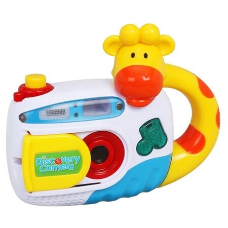 Discovery Cam - Brightly Colored and exciting looking realistic camera operation for your budding photogrpaher baby. 12 interesting safari slides. 10 exciting tunes to add to the excitement. Slide the lens cover with click sound.. Turn the wheel button with click sound. Press snapping button and hear a funny sound. Perfect for your little budding photographer 18 months and up. <li>Length: 6.38</li> <li>Width: 2.44</li> <li>Height: 5.0- SKU: MID0S165</li>