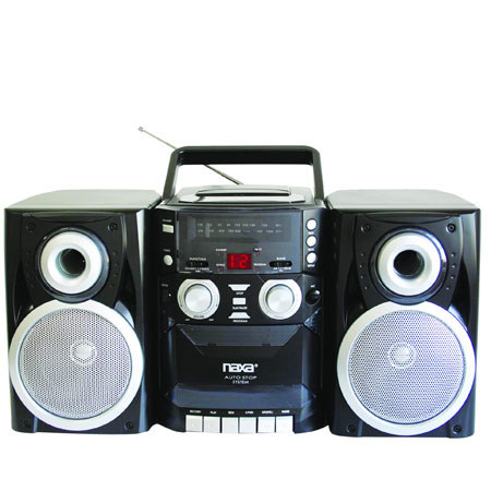 NAXA Electronics NPB-426 Portable CD Player with AM/FM Stereo Radio, Cassette Player/Recorder and Twin Detachable Speakers